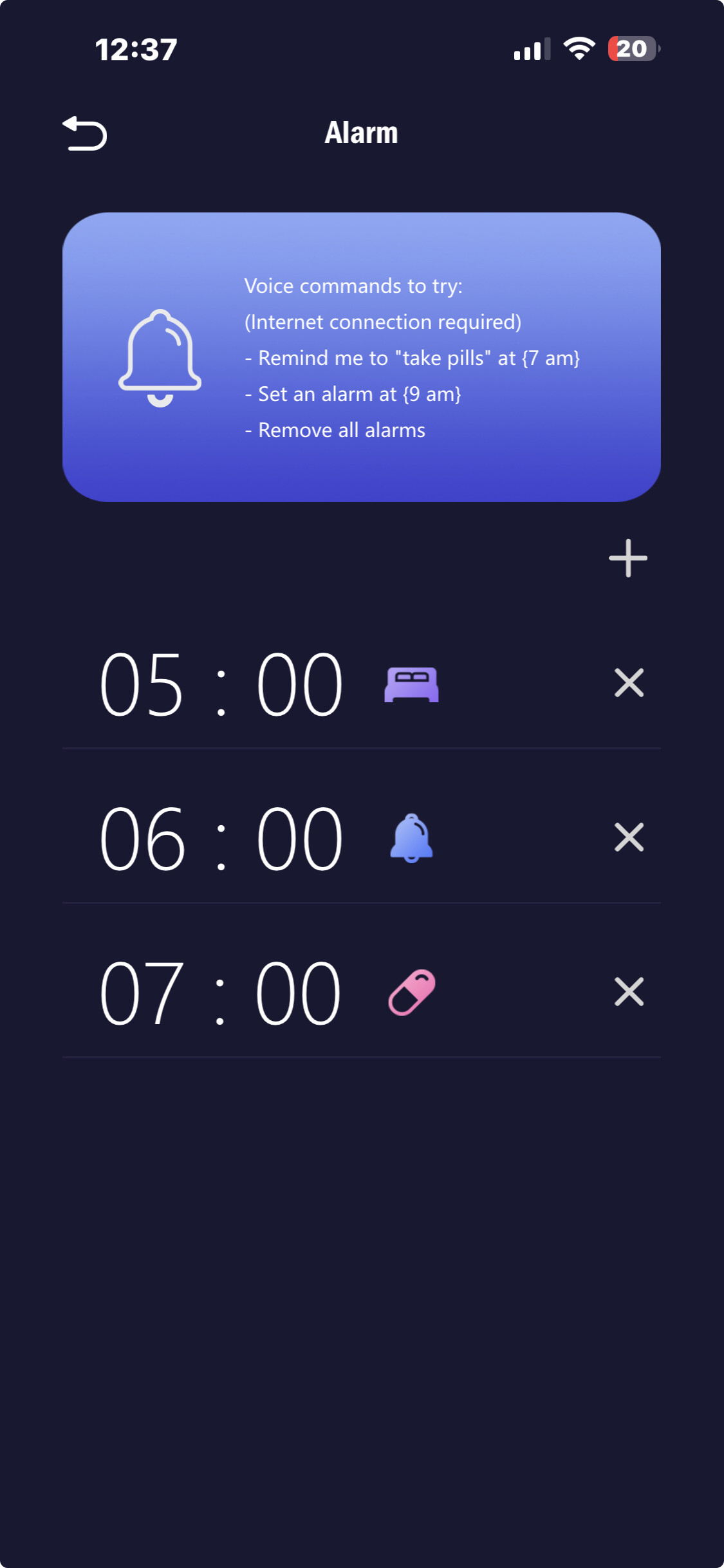 Hello, @vojtechrotschedl . . . we checked with the LivingAI development team and they stated there are no verbal commands for setting or removing alarms from AIBI. They must be done through the app.