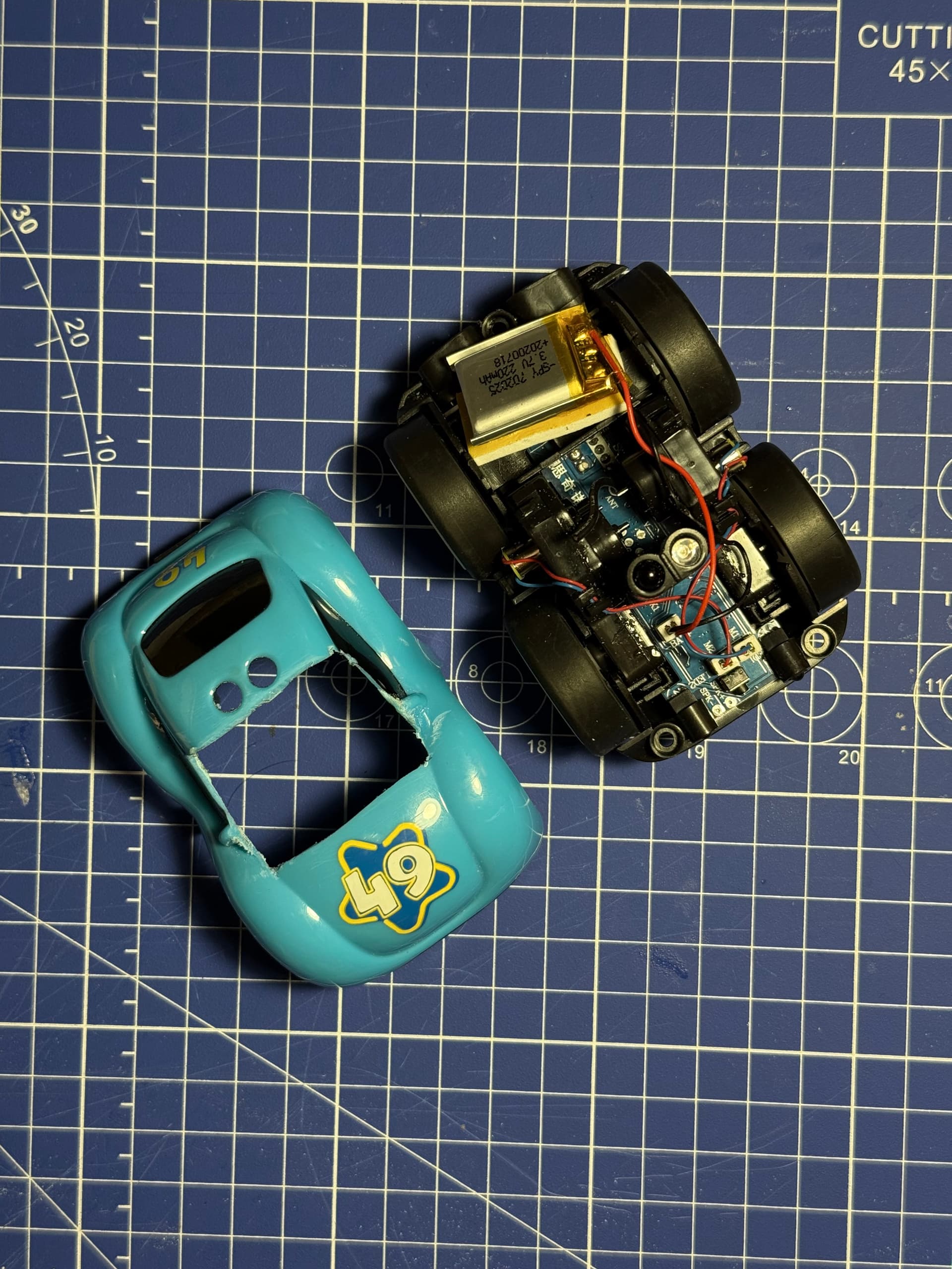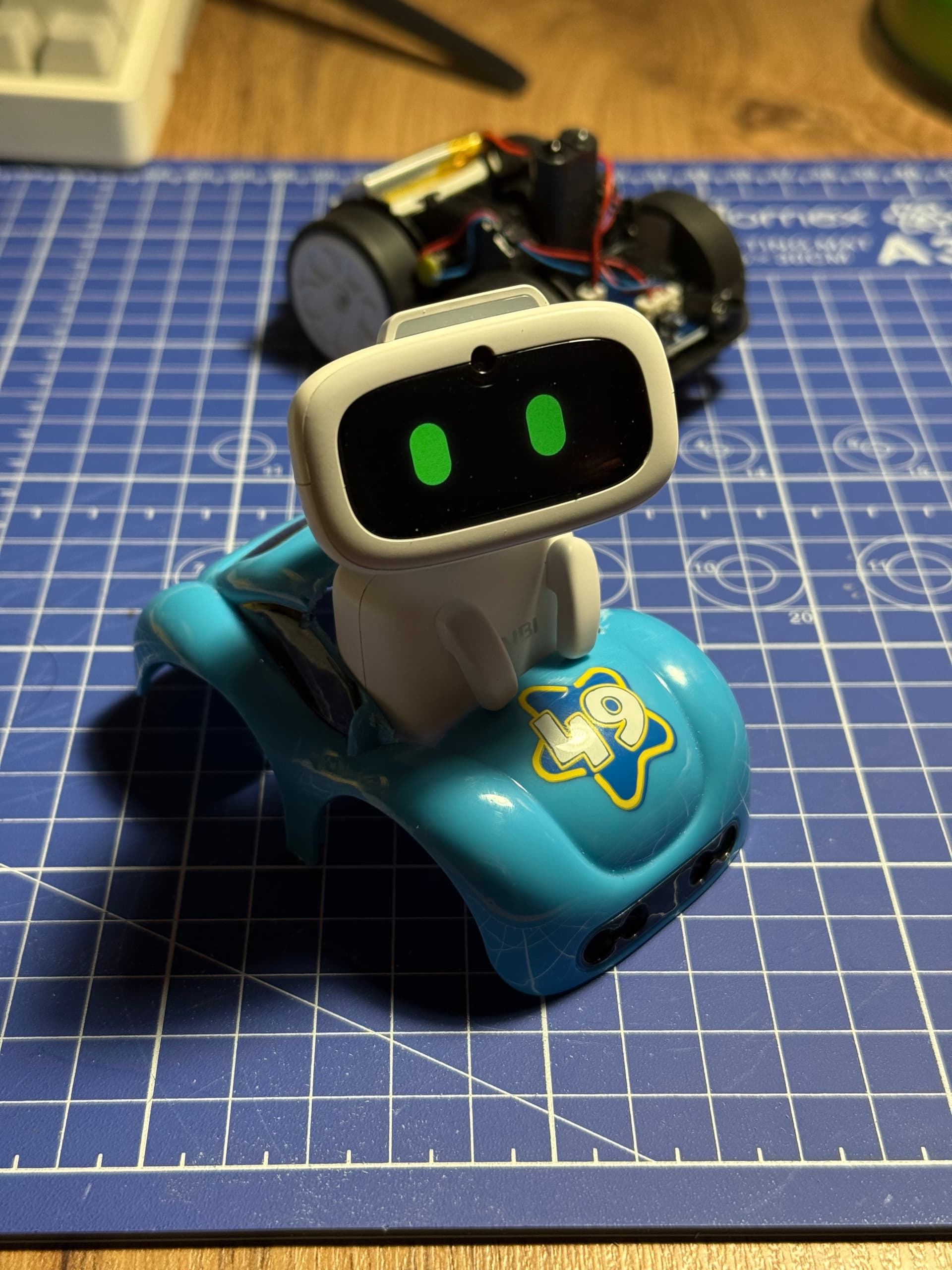 Hi everyone! I’ve been trying to come up with a transportation solution for Aibi for quite some time. Right now, I’ve settled on a toy car that has remote control capabilities, can follow a person, and drive along a drawn line. However, the car’s body turned out to be too low to support the robot. Unfortunately, I don’t have any experience with 3D printing or modeling. I plan to try a few more car models—maybe one of them will fit in terms of size.