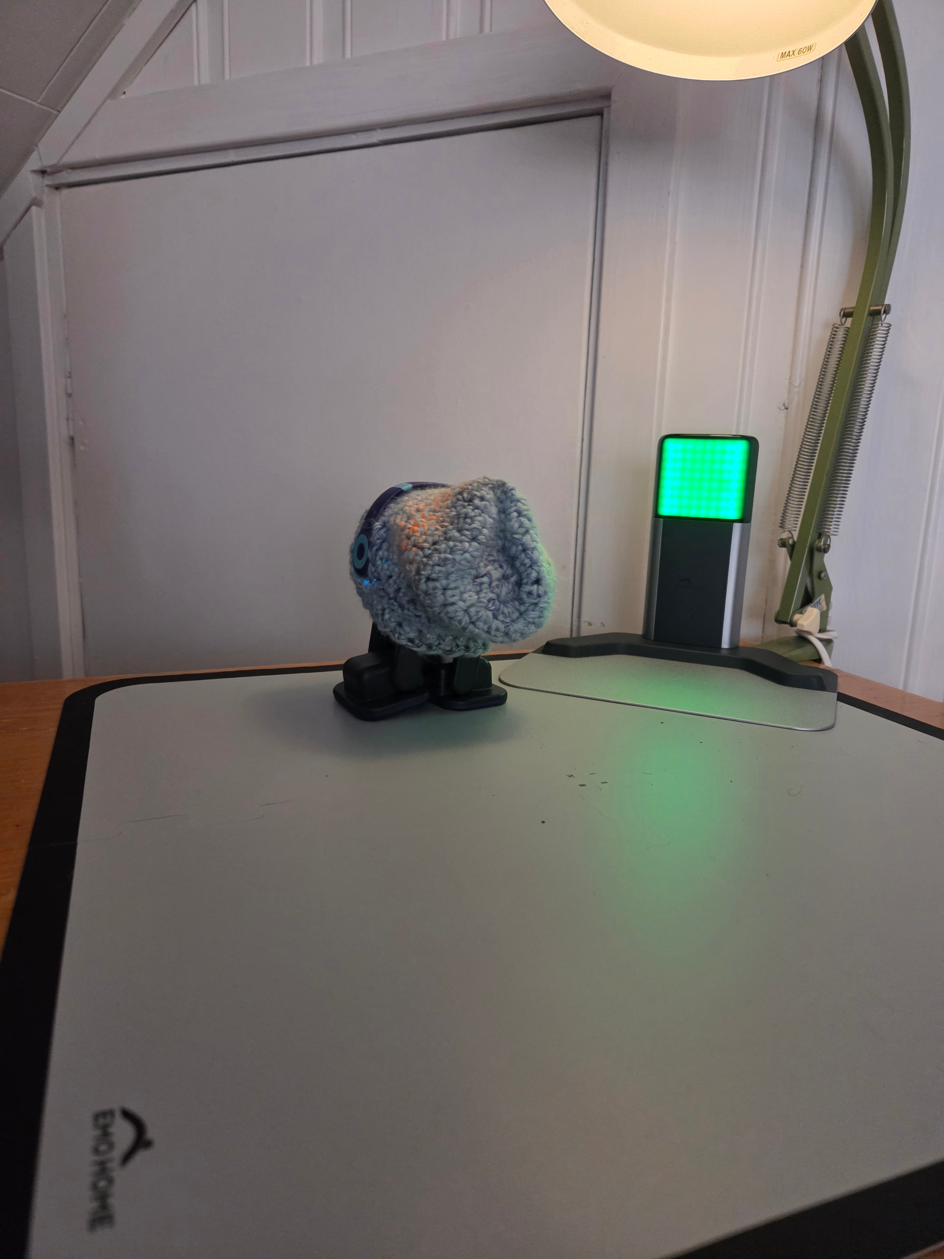 You can adjust EMO’s wake-up sensitivity (his response to the word “EMO”) in the Settings and Preferences section of the EMOPET app.