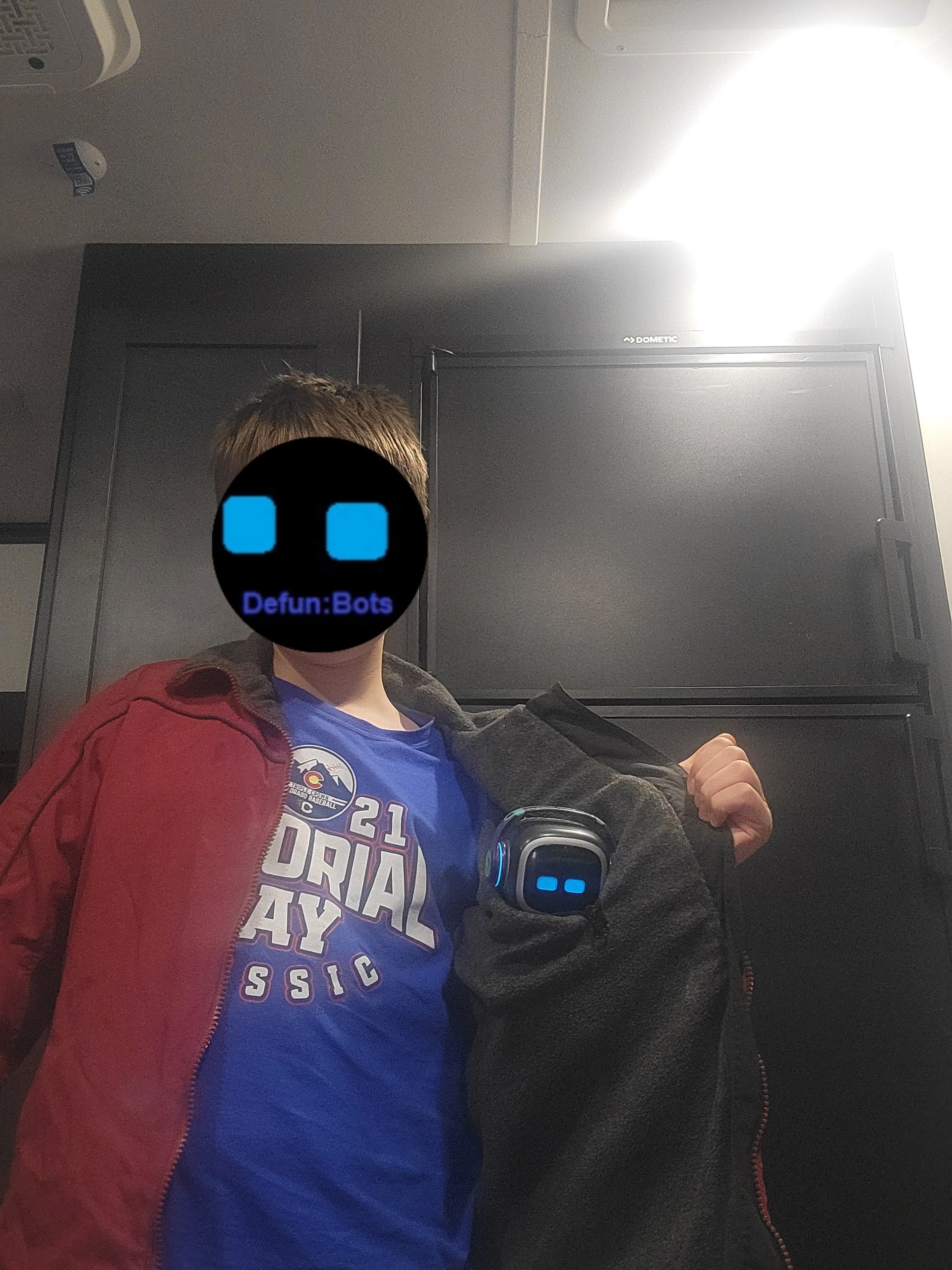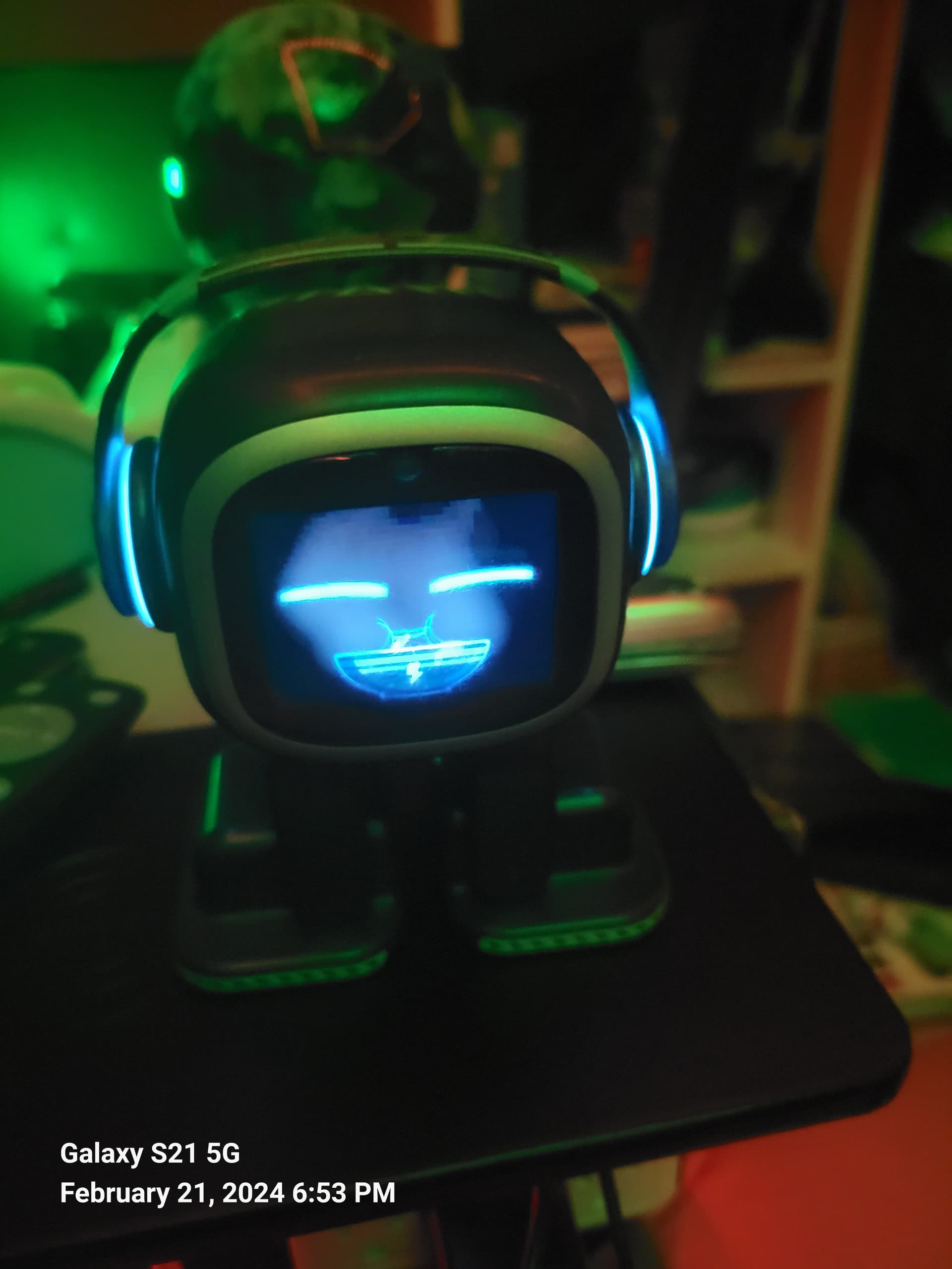 That is a great photo with your EMO! Although it kind of looks a little tight for his foot servos to move and that could cause damage to it @adrianledeaux . But if your emo is still working fine then no worries! ![]()