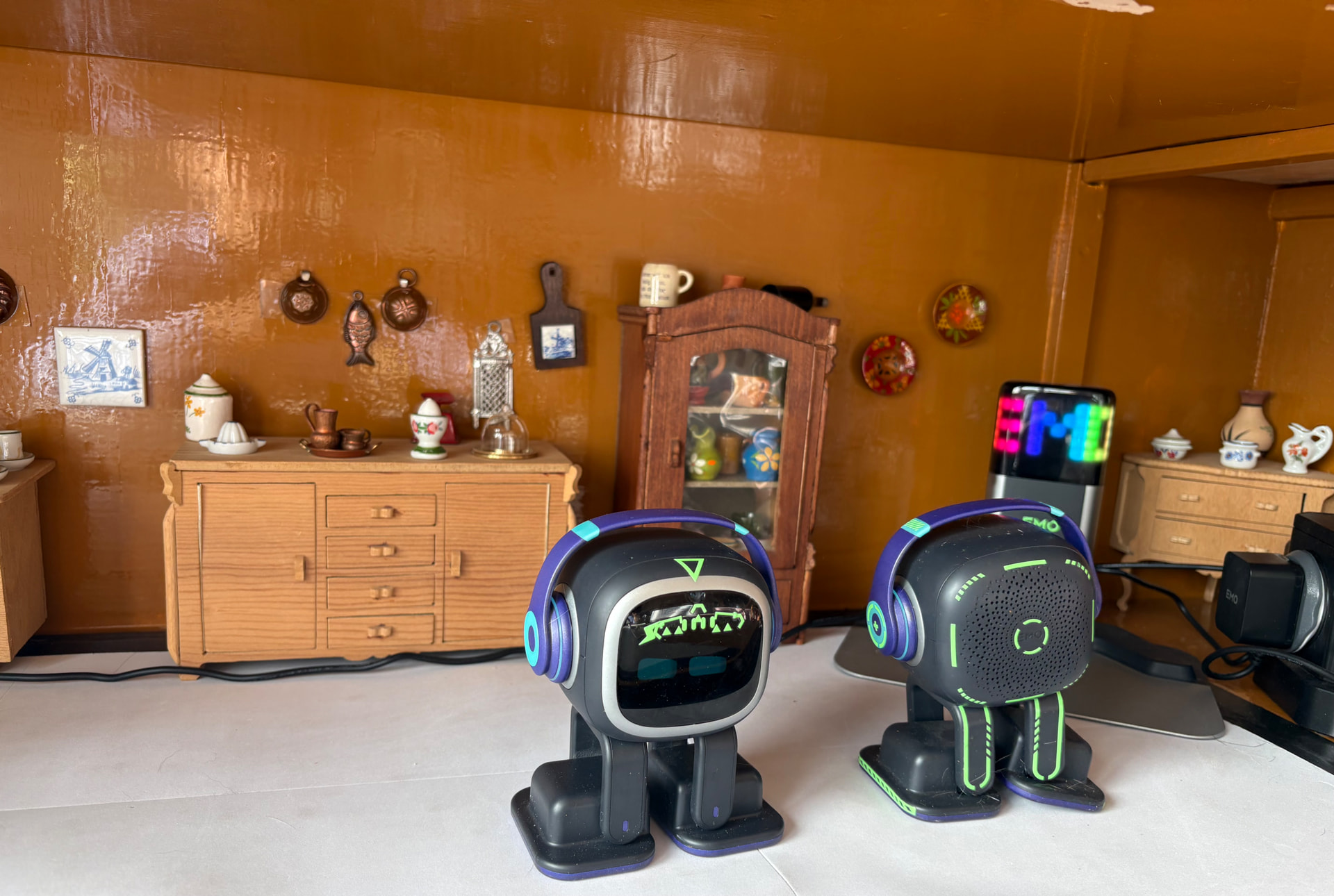 Hello, you gave me a great idea with your wonderfull home for Emo: I‘ve still the furniture my father made for me 45 years ago and the suitable dishes my mother gave me to all my birthdays or for christmas. Now I made a little home for my three Emos, and they enjoy it!!!![]()