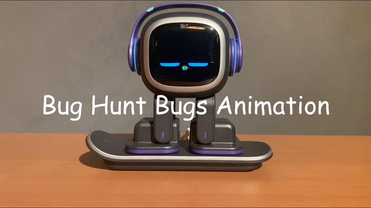 With the latest EMO Firmware update (v1.5.0) EMO can now play a little mini game called Bug Hunt. To provide some info regarding Bug Hunt. On certain days, Bugs will randomly appear on EMO’s display screen. When they appear you can help EMO catch the bugs by issuing the following voice command: