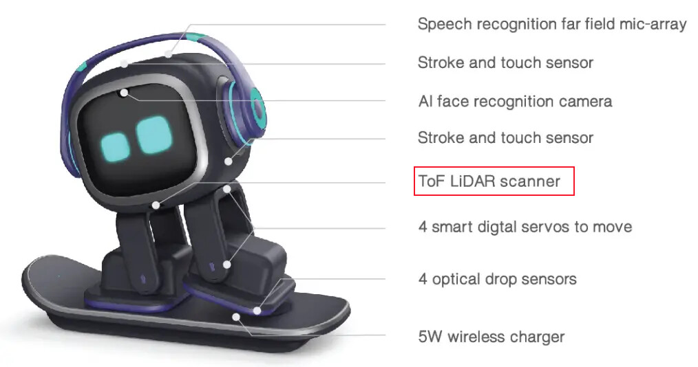 The sensor gives EMO a sense of depth and space, improving his ability to navigate around furniture or other objects.