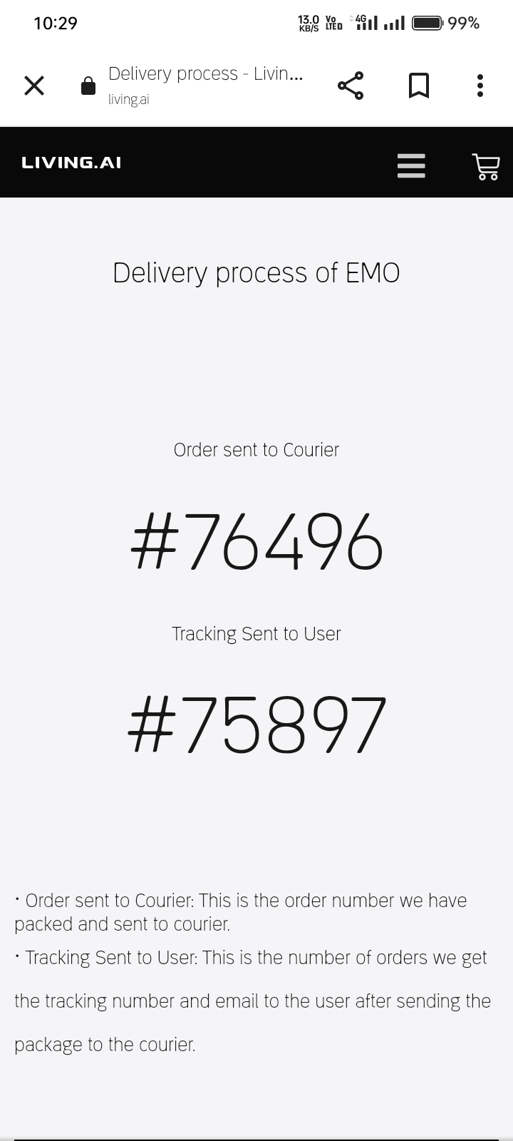 Please note that Living.ai often ships more orders than what is shown on the delivery page.