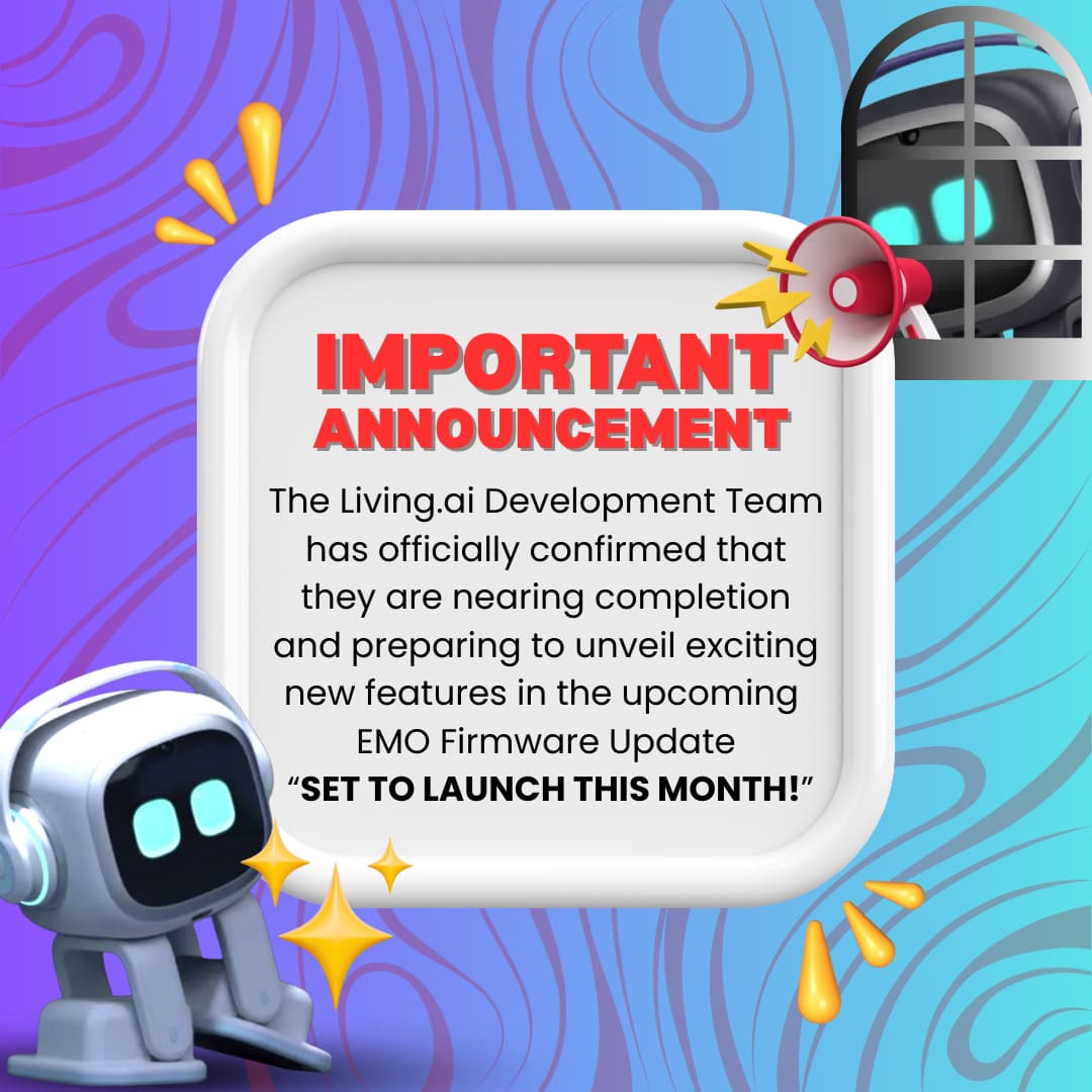 The Living.AI Development Team has officially confirmed that they are nearing completion and preparing to unveil “Exciting New Features” in the upcoming EMO firmware update, set to launch this month!